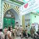 Police Personnel guard outside a mosque as protests over “I Love Muhammad” posters in Uttar Pradesh turned violent on Friday at Bareilly in Uttar Pradesh on September 29, 2025.