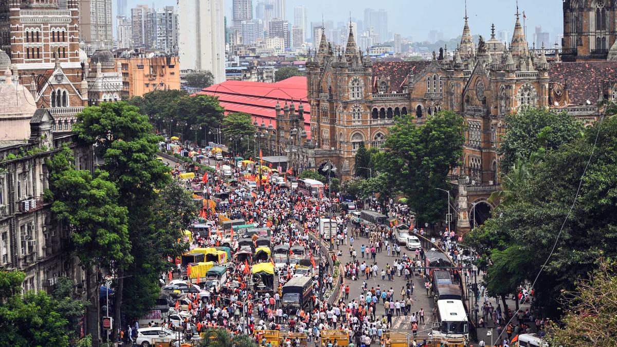 Representational image of the Maratha quota agitation outside Chhatrapati Shivaji Maharaj Terminus…