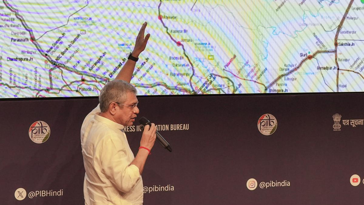 Union Minister for Railways Ashwini Vaishnaw speaks during a press briefing after…
