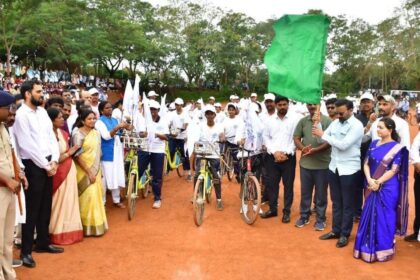 Labour Minister Santosh Lad flagging off a bicycle rally as part of…