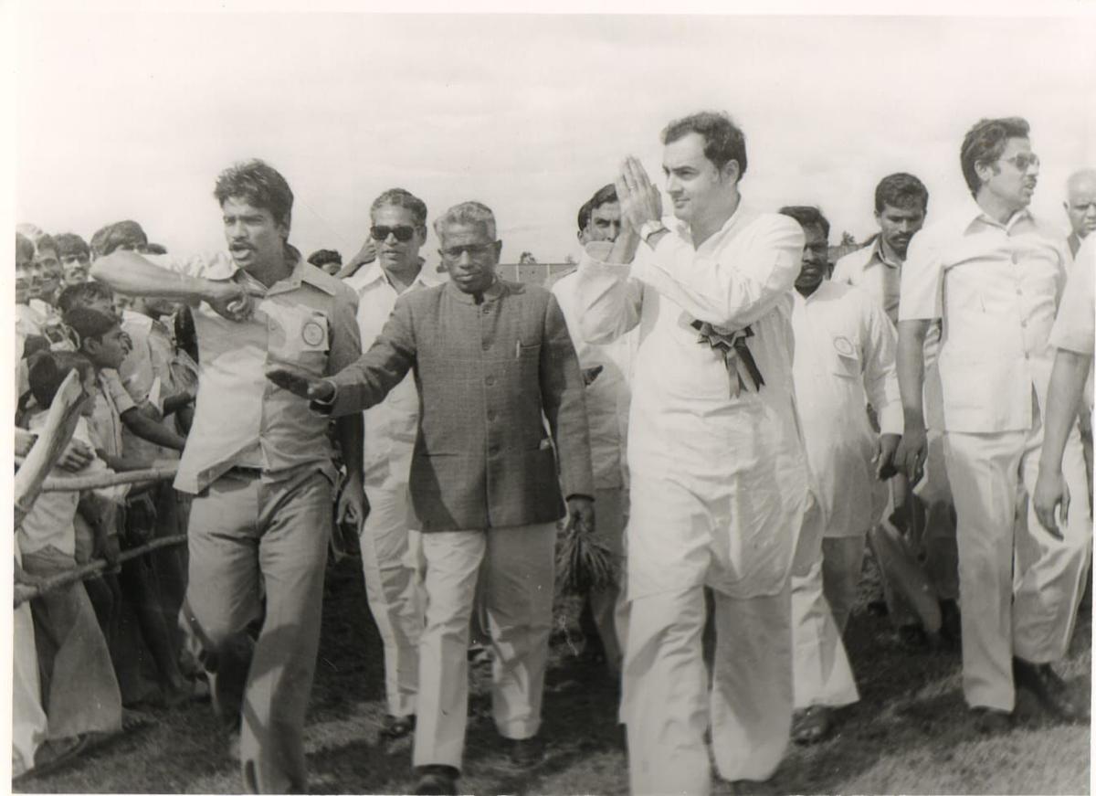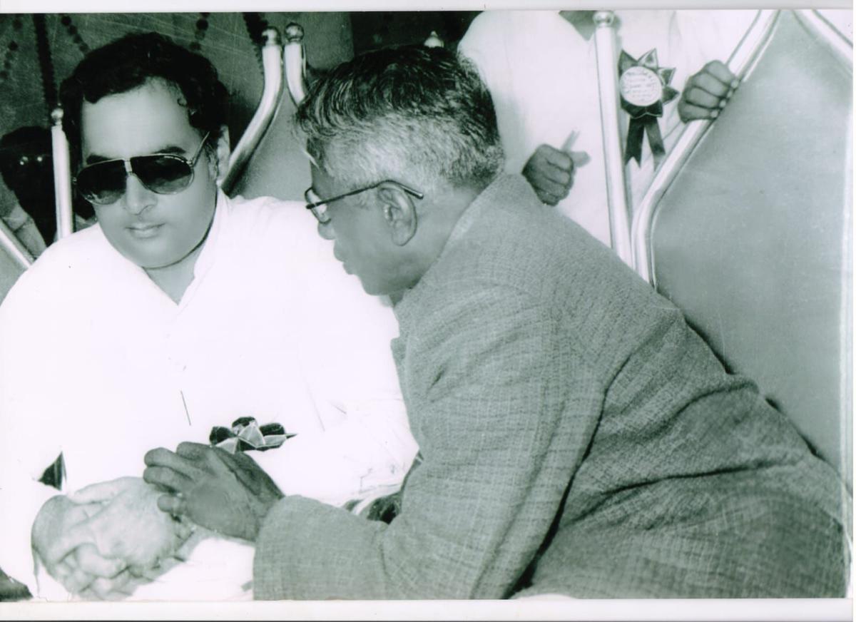 Former PM Rajiv Gandhi having a word with Bheemanna Khandre