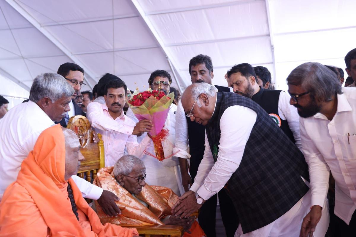 Congress president Mallikarjuna Kharge greeting Bheemanna Khandre