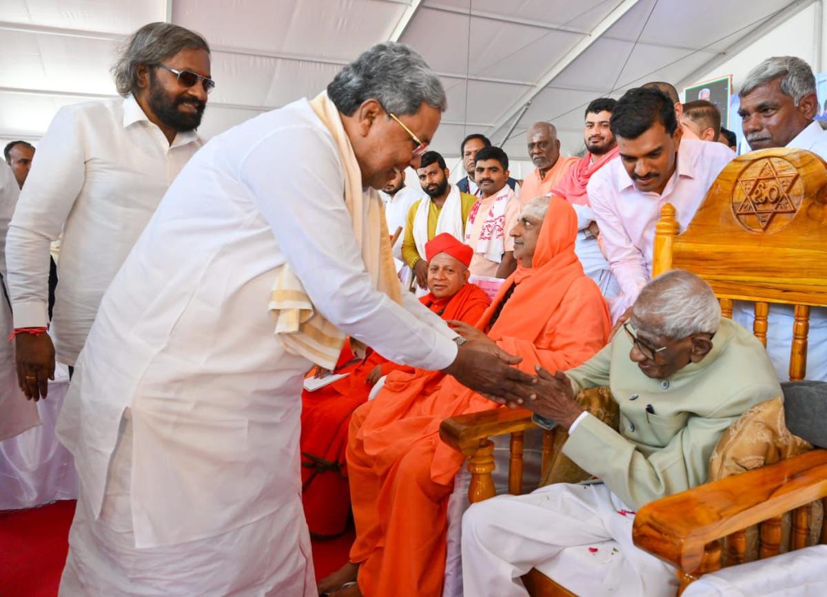 Karnataka Chief Minister Siddaramaiah greeting Bheemanna Khandre
