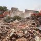 Excavators being used to demolish illegal constructions along the Kukrail river, at Akbar Nagar in Lucknow, on June 15, 2024.