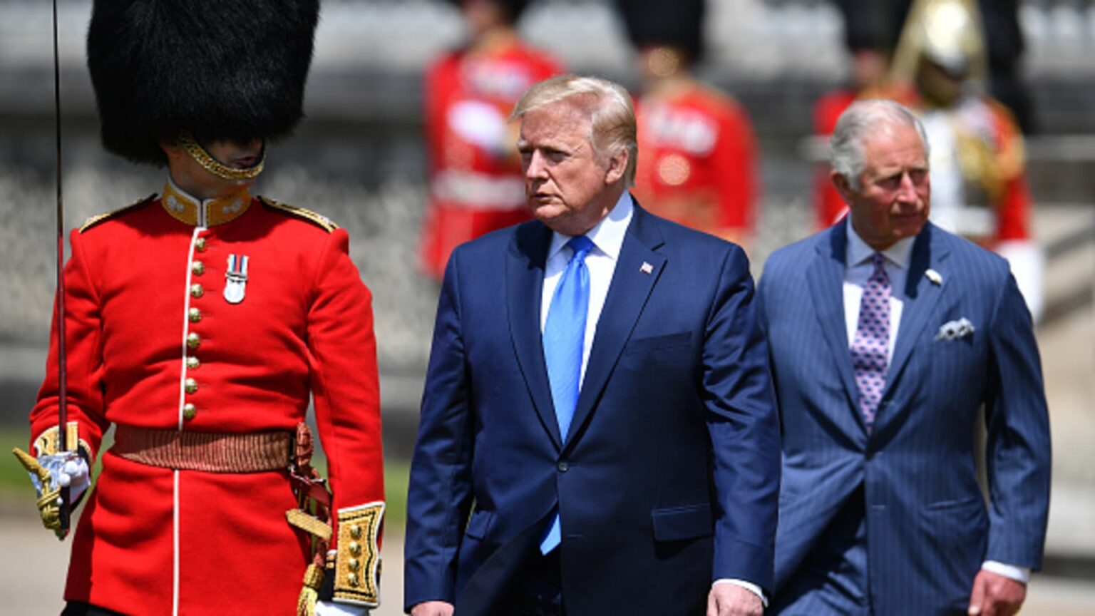 President Donald Trump inspects a Guard of Honour with King Charles.
