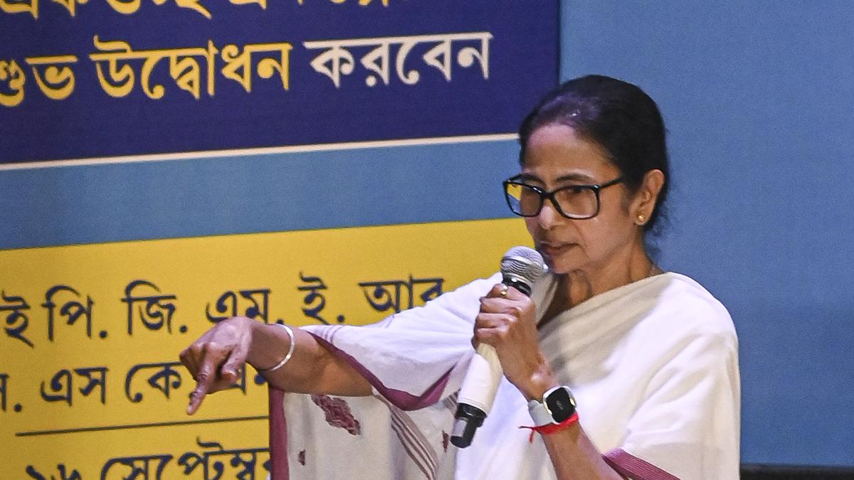 West Bengal Chief Minister Mamata Banerjee speaks during the inauguration of a new building of SSKM Hospital, in Kolkata, Tuesday, Sept. 16, 2025.