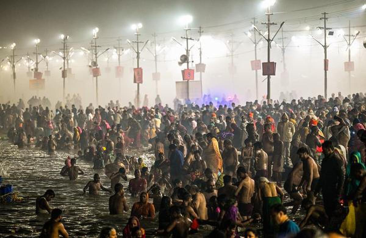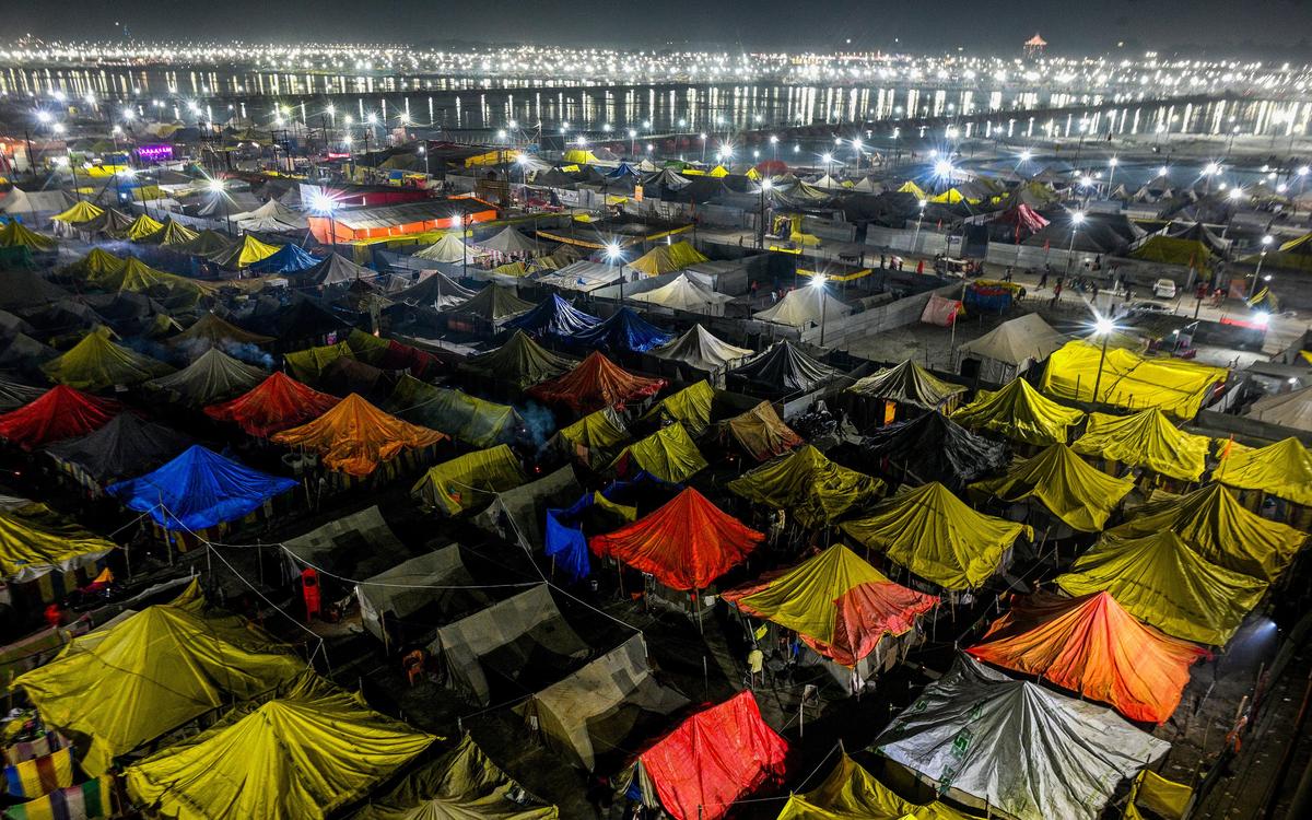 Temporary tent colonies have been set up along the banks to accommodate pilgrims. Despite temperatures often dropping to single digits at night, devotees continue to take ritualistic dips in the waters.