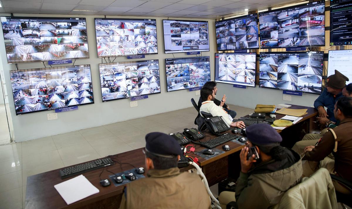High vigil: Police and Railway personnel monitor crowds round the clock at the Integrated Command and Control Centre.