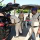 Andhra Pradesh ADGP-Intelligence Mahesh Chandra Laddha, Eluru Range Inspector-General G.V.G. Ashok Kumar and other police officers in Vijayawada inspect weapons seized from the arrested Maoists.