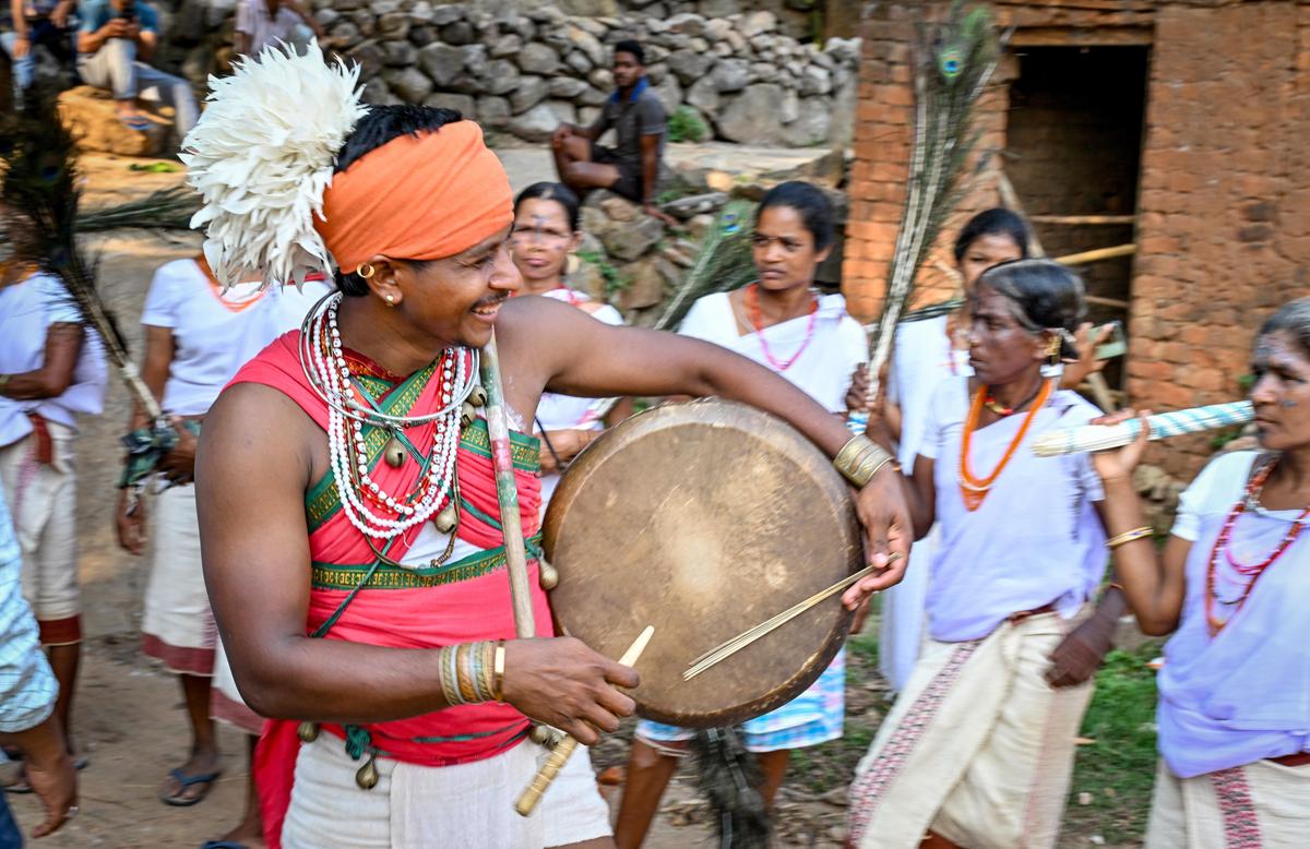 Good times: A Lanjia Saora man plays the drums during a traditional dance in a village in the Eastern Ghats of the Gunupur region in Rayagada district of Odisha.