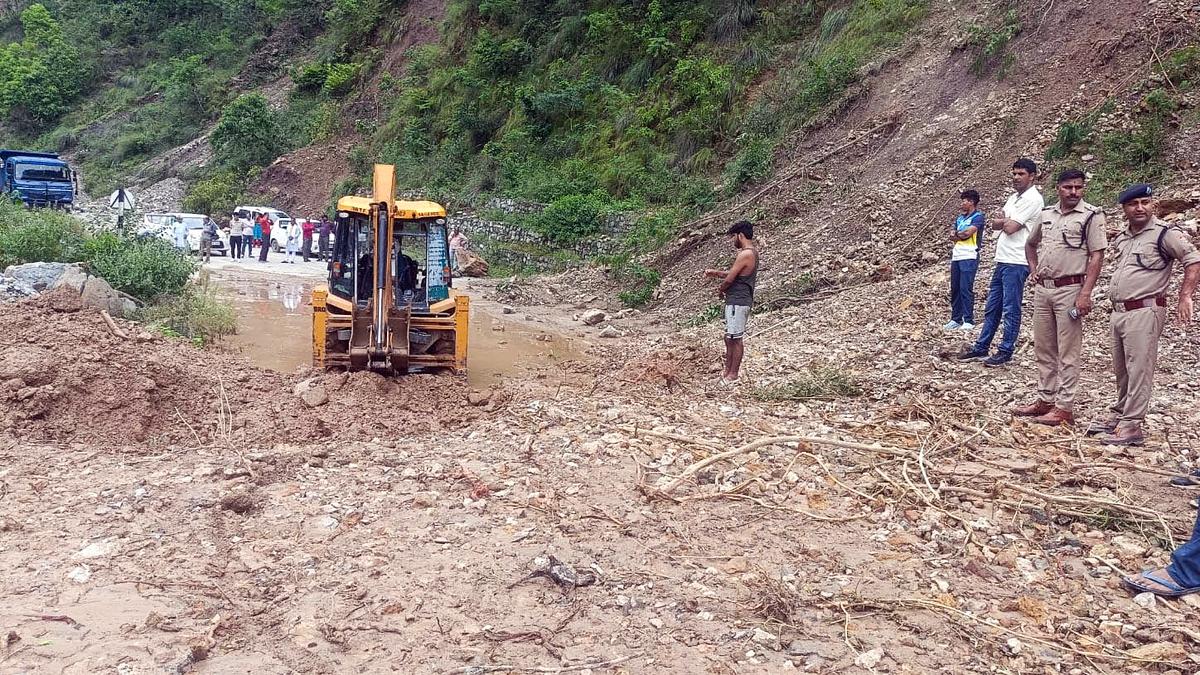 Restoration work is under way at Kempty Falls Road following heavy rainfall in Mussoorie on September 17, 2025.