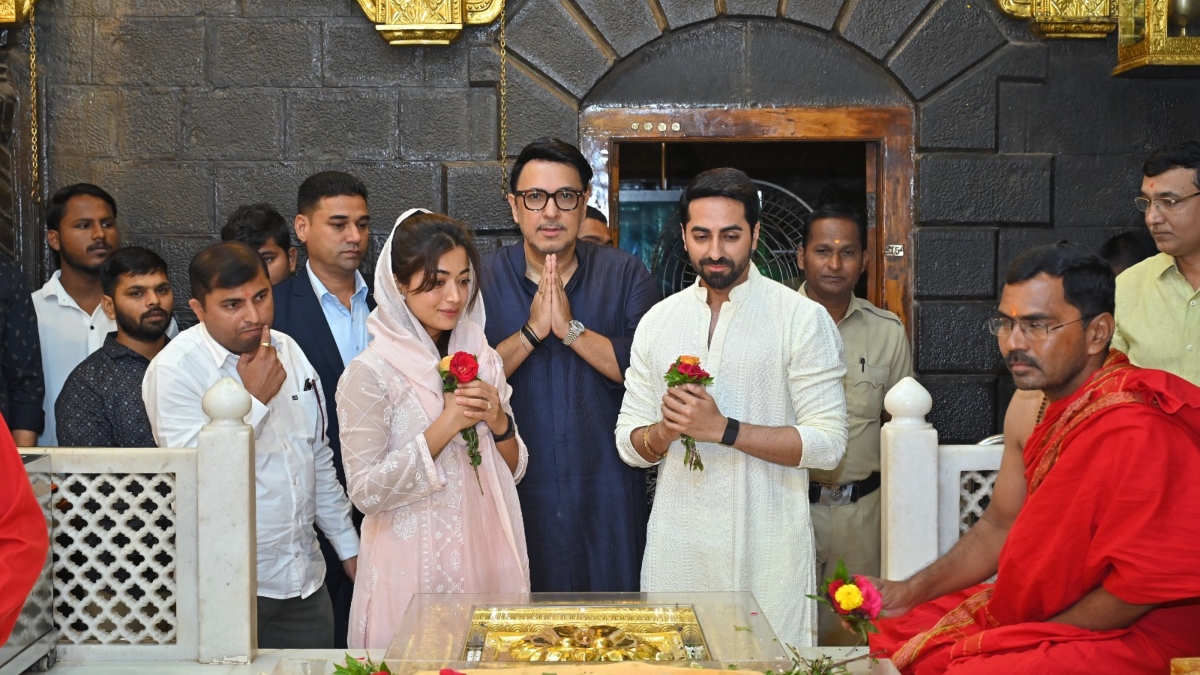 Thama actors Ayushmann Khurrana and Rashmika Mandanna visited Shri Sai Baba of Shirdi temple on Tuesday. In the backdrop of the release of the movie ‘Thama ‘ on the October 21, the lead actors along with the film crew visited Shirdi and worshipped Sai Baba.