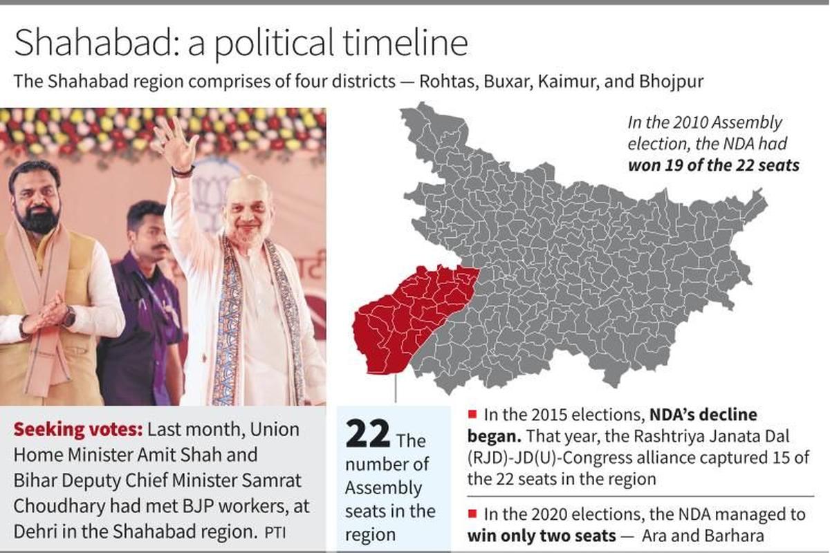 The region comprises four districts – Rohtas, Buxar, Kaimur, and Bhojpur – which together account for 22 Assembly constituencies. The NDA managed to win only two – Ara and Barhara – both by the Bharatiya Janata Party (BJP). Alliance partner Janata Dal (United) failed to open its account.