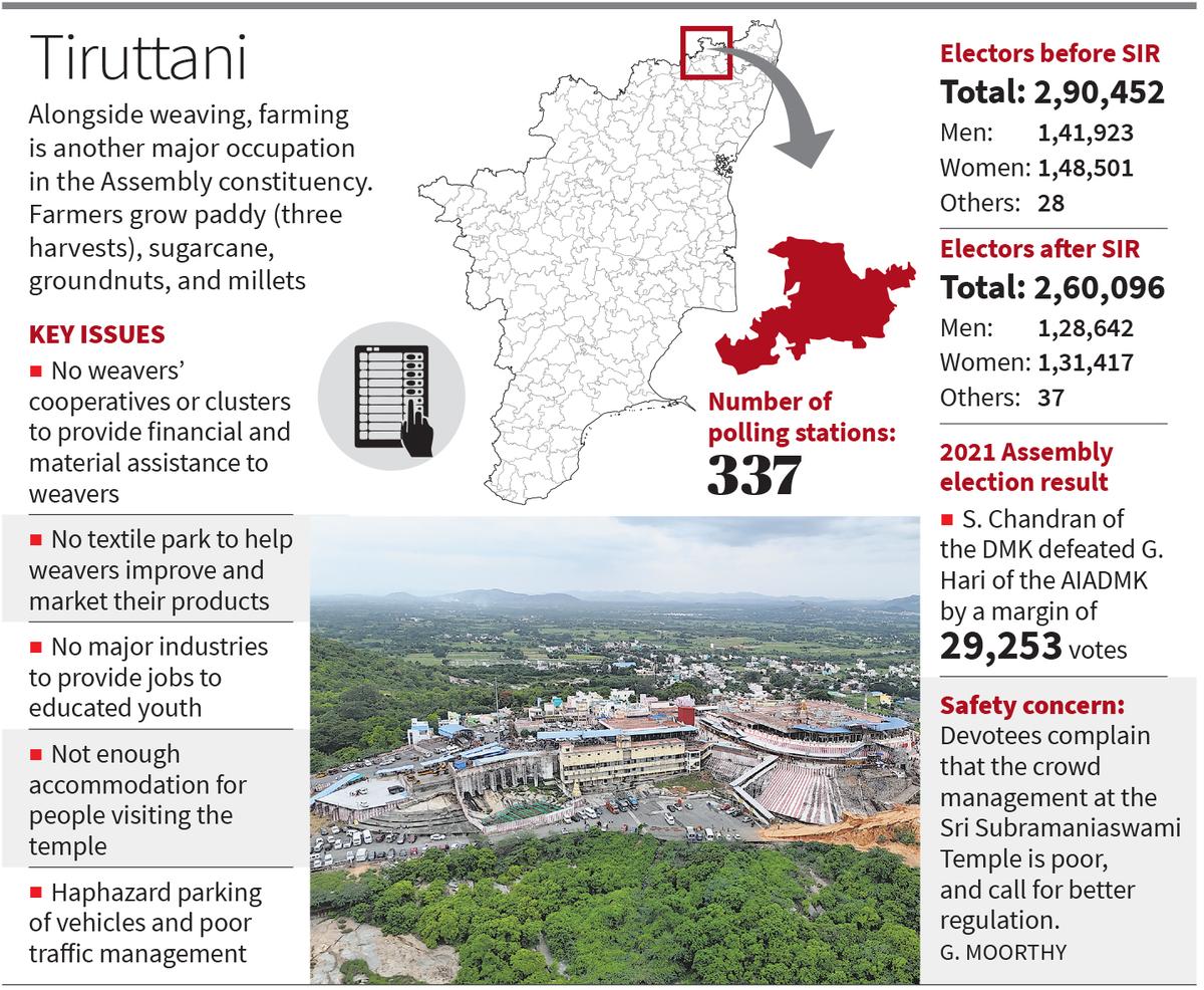 Hundreds of power looms rattle and hum throughout the day to make cotton lungis and sarees in this Assembly constituency that is home to the hill shrine of Sri Subramaniaswami in Tiruttani. They are part of a larger cluster of power looms spread across Arakkonam and Sholingur.