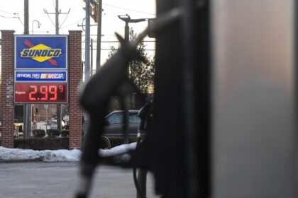 Gas prices at a Sunoco gas station in Media, Pennsylvania, US, on…