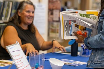 A jobseeker holds a brochure during a NYS Department Of Labor job…
