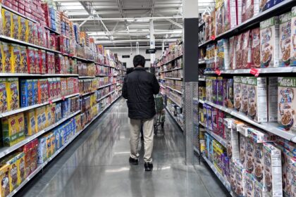 A man walks at a supermarket in Houston, Texas, on March 17,…