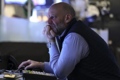 A trader works on the floor of the New York Stock Exchange…