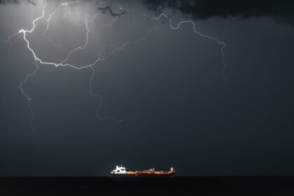 Lightning occurs when META 4, an Oil Products Tanker, sails into Muscat…