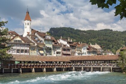 Untere Schleuse wooden bridge in Thun, Switzerland.Education Images | Universal Images Group…