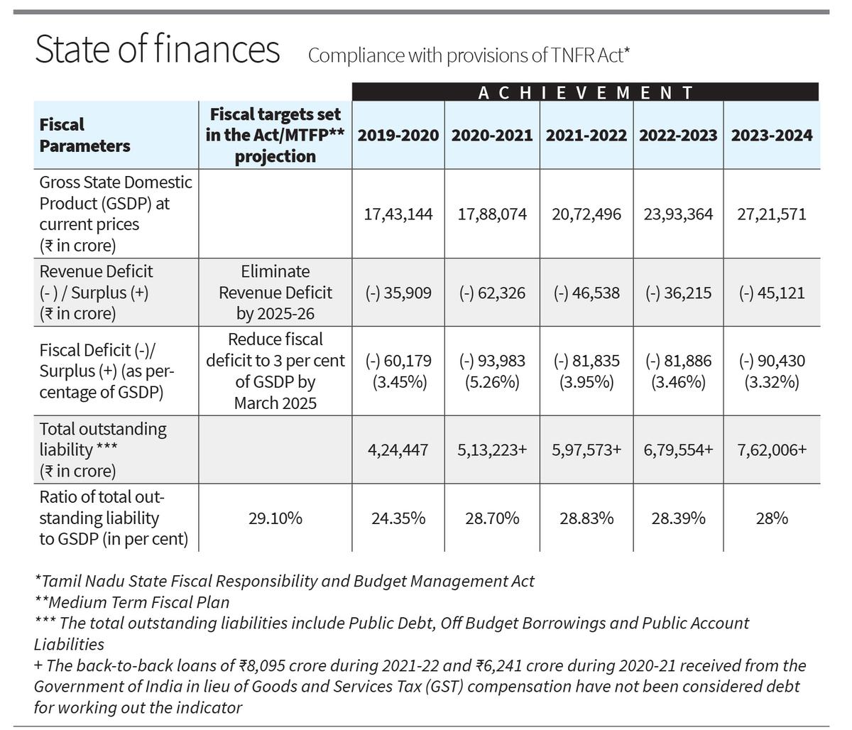 The Comptroller and Auditor-General (CAG) of India has assessed that the Tamil Nadu government, during 2023-24, showed improvement only in one out of three targets fixed in the area of fiscal indicators.