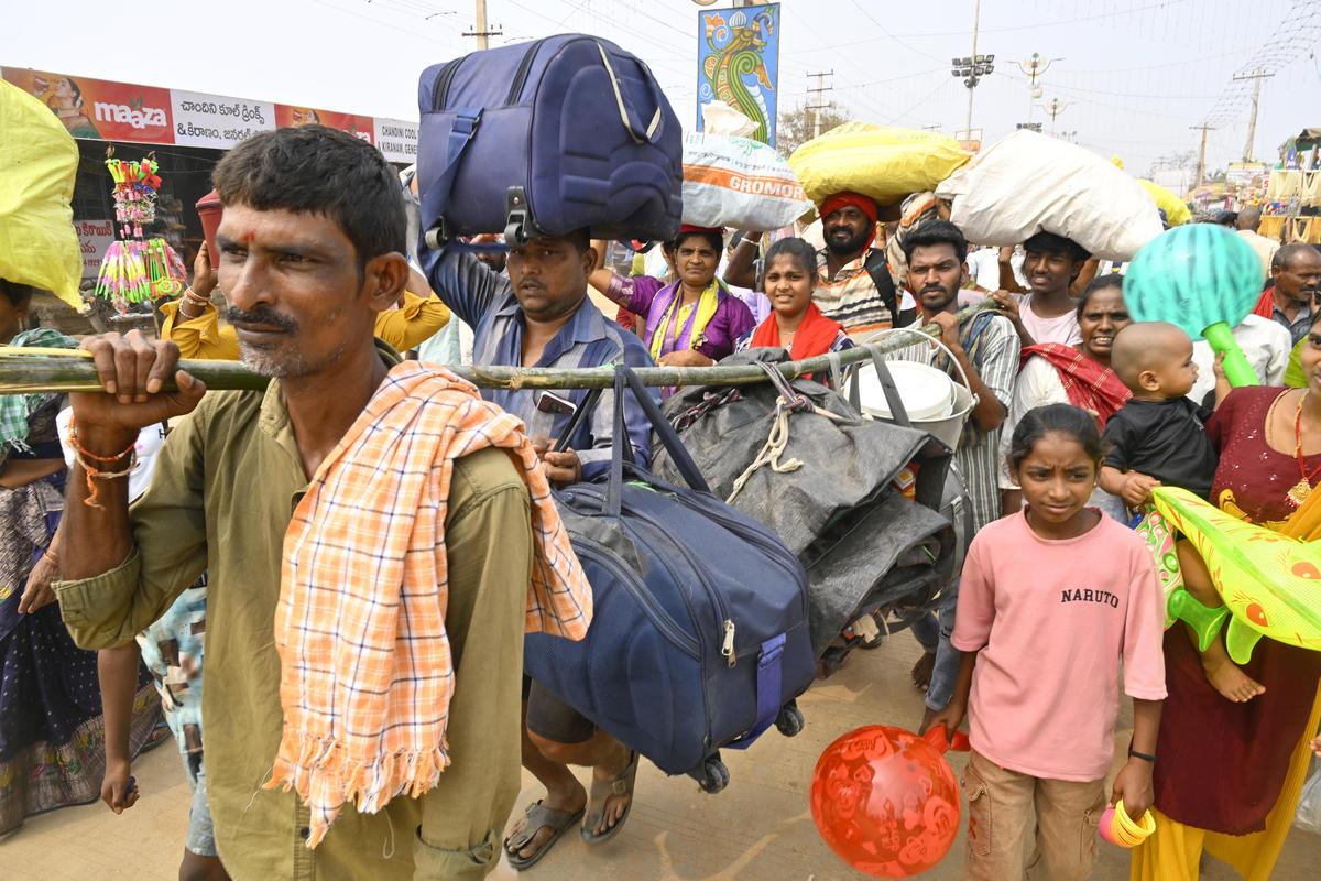 Homeward bound: Devotees begin their return journey after darshan of Sammakka and Saralamma, as the festival draws to a close at Medaram.