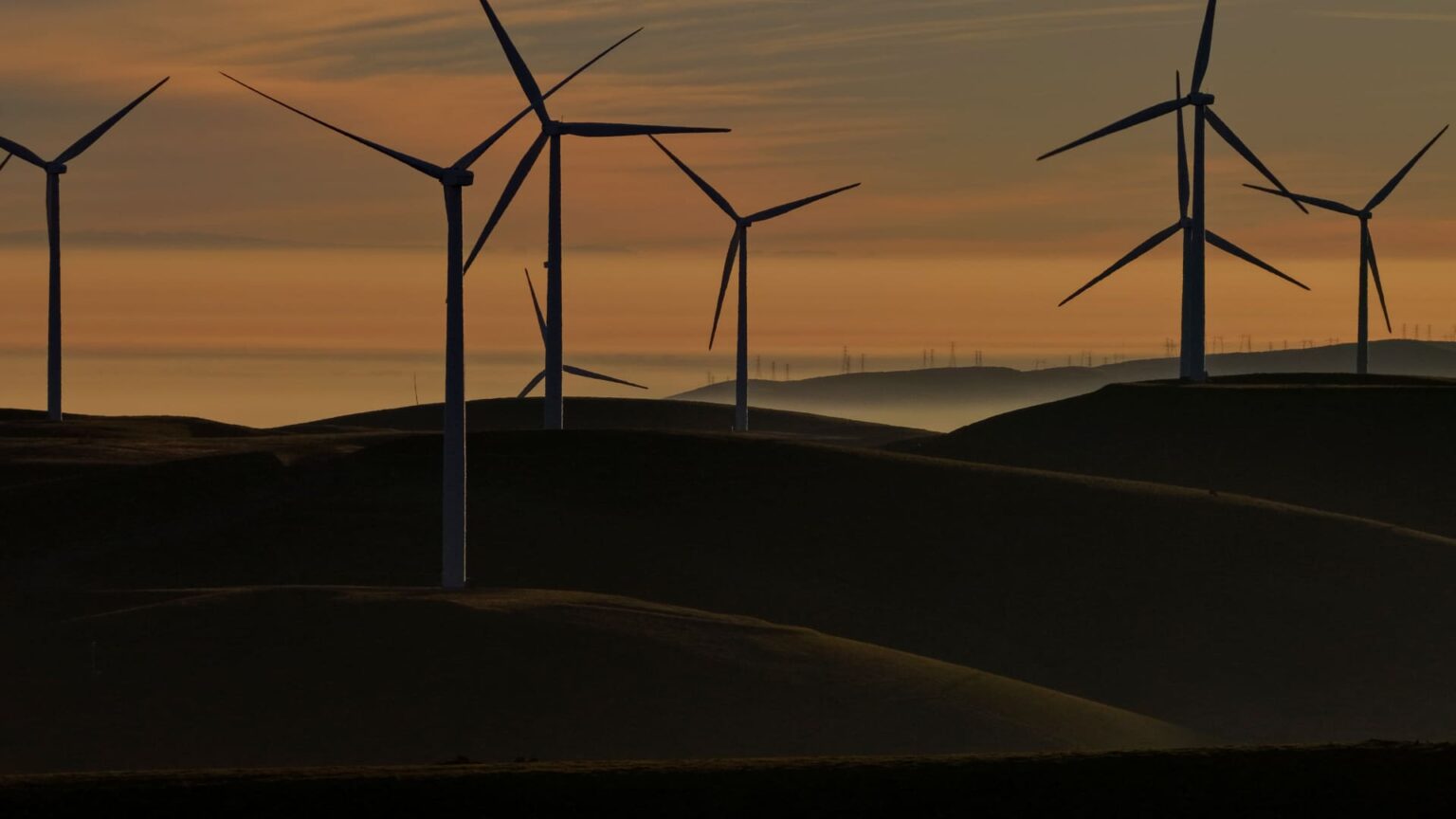 An aerial view of wind turbines at the Altamont Pass wind farm on January 13, 2026 in Livermore, California.